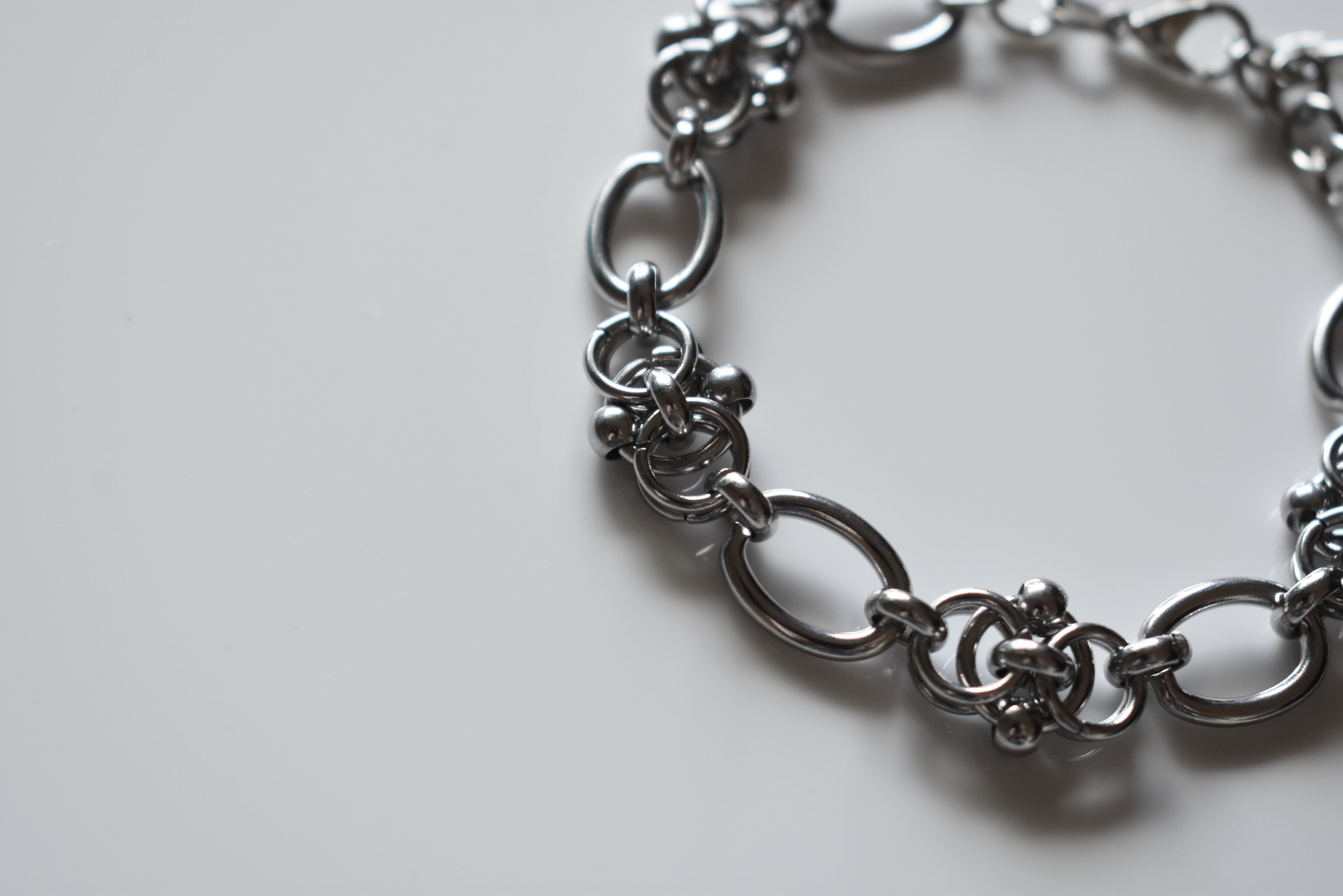ステンレスチェーンと留め具部分のチェーンは真鍮素材を使用しています。