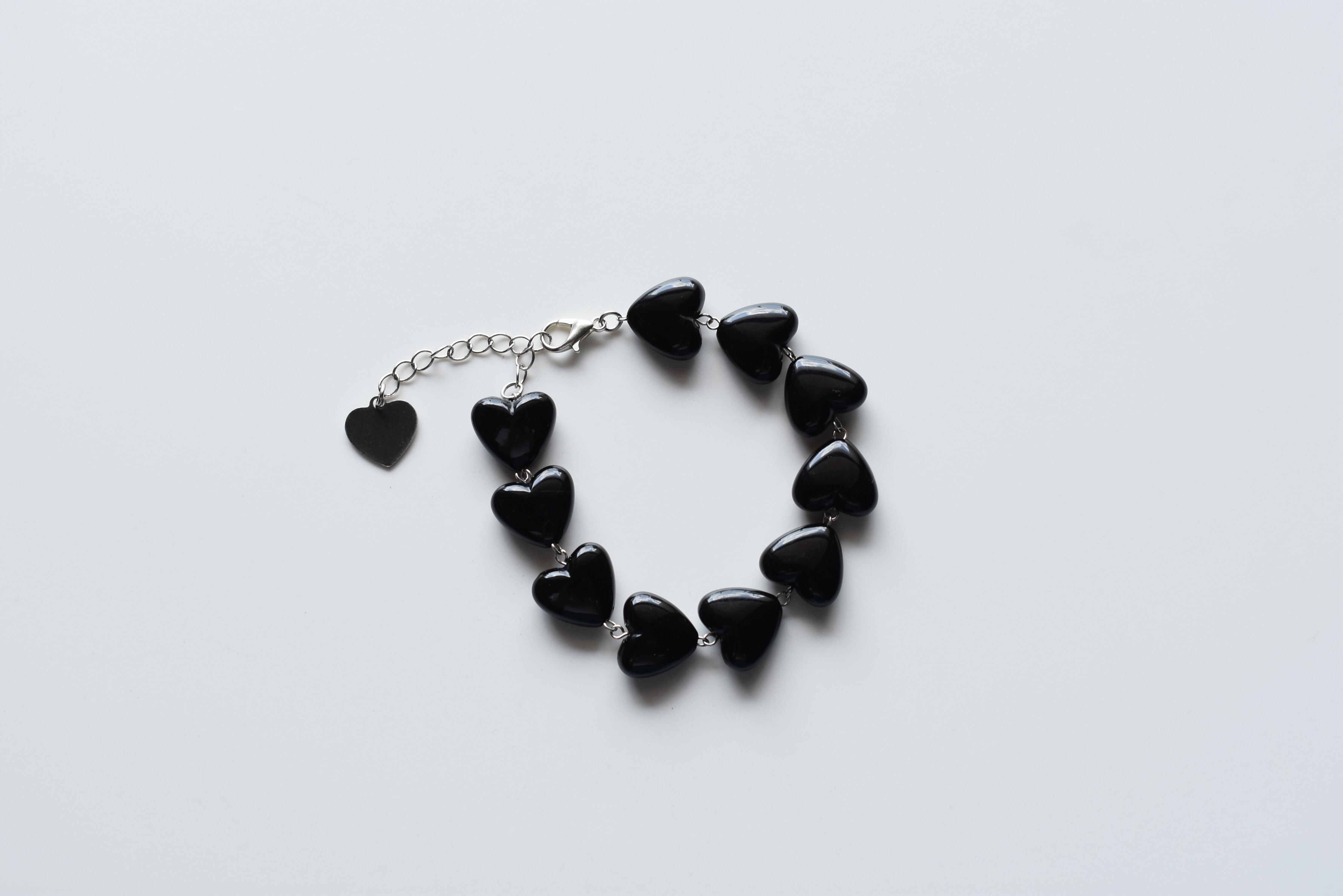 プラスチックのハートビーズを使用したブレスレットです。