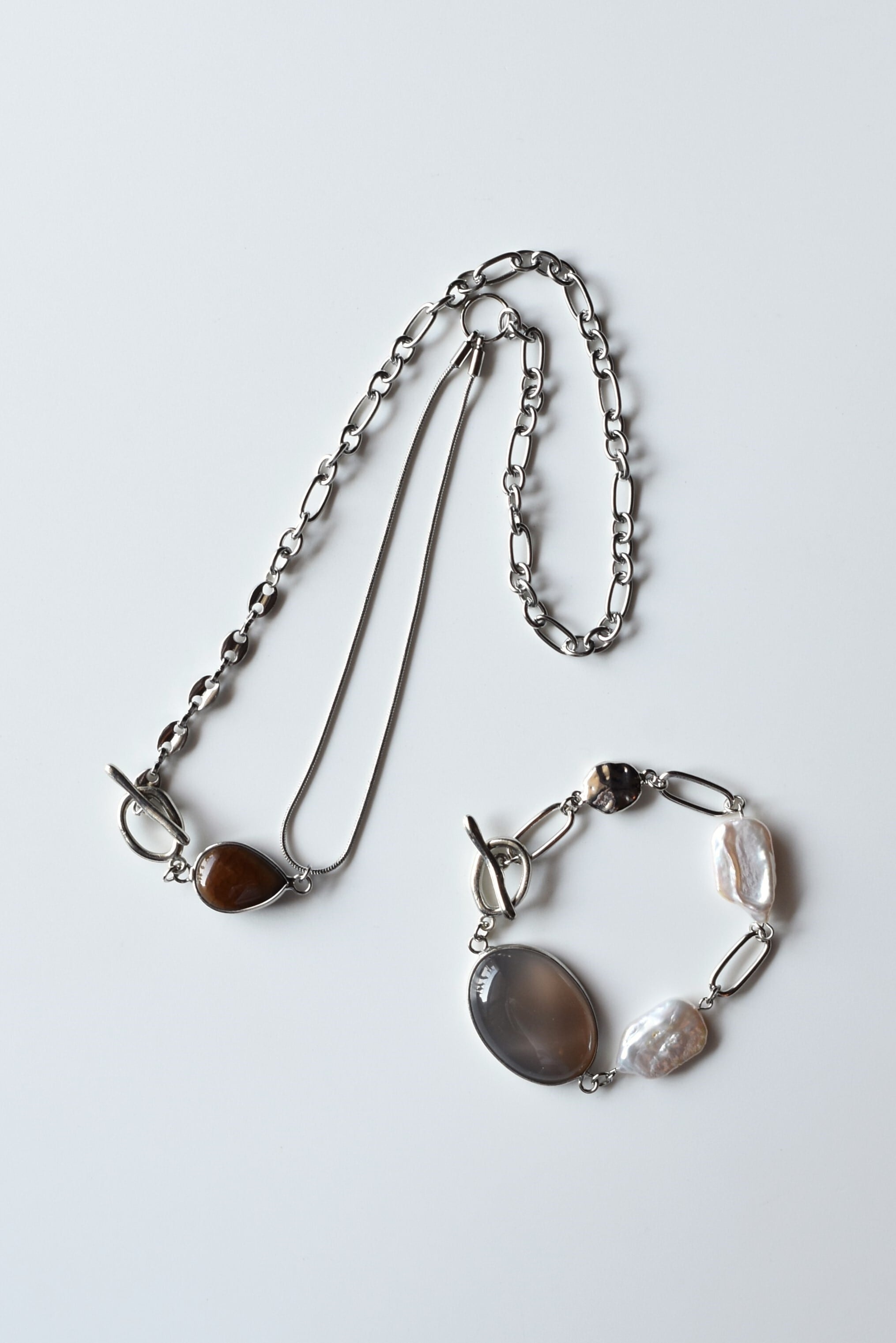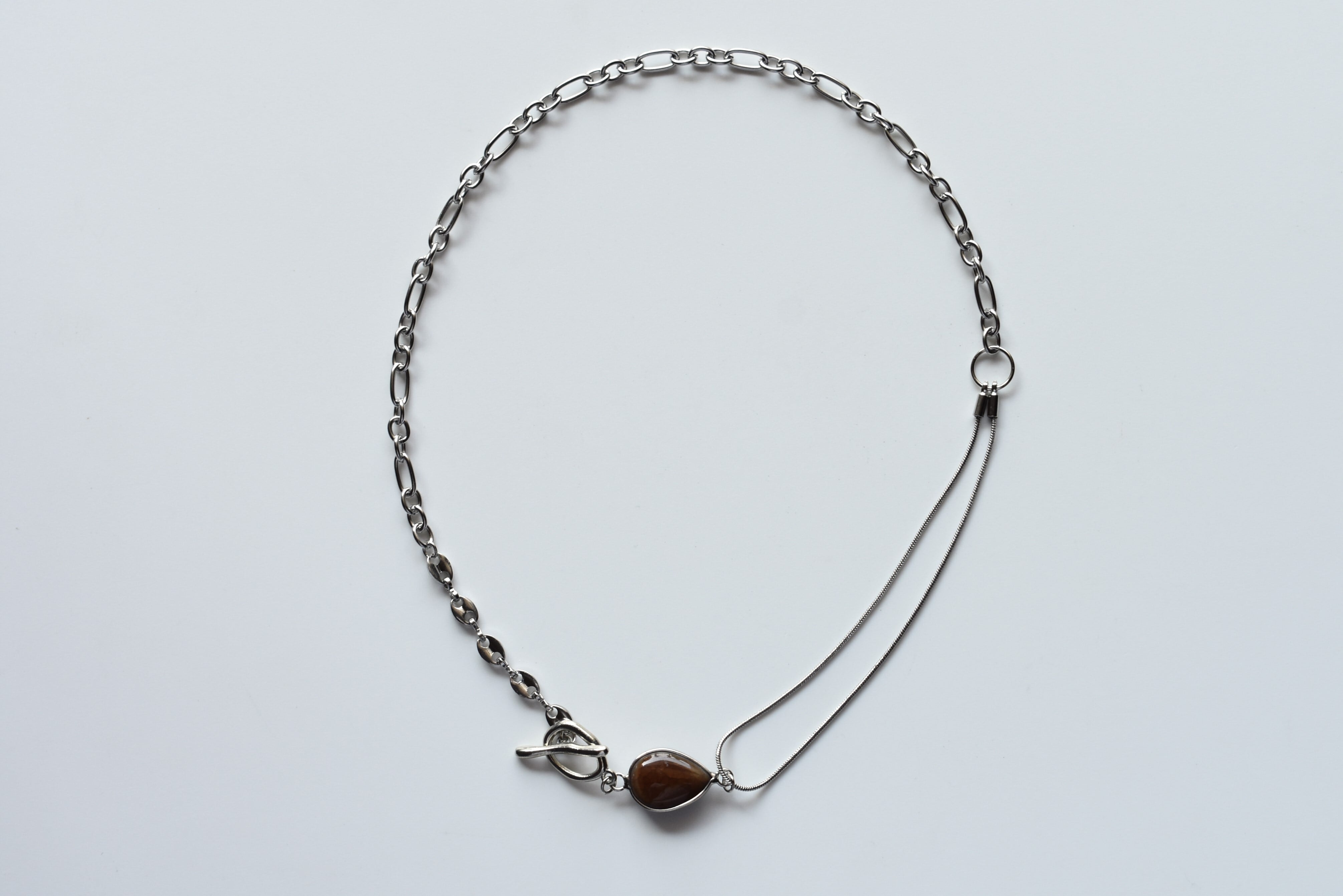 天然石(ブラックオニキス)と3種類のチェーンを組み合わせたネックレスです。